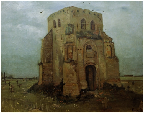 Nadat Theo van Gogh, de vader van Vincent van Gogh, in 1882 dominee werd in Nuenen, verhuisde ook Vincent naar Nuenen waar hij een atelier inrichtte. Vincent van Gogh schreef in een brief aan zijn broer Theo waarom hij de oude afgestompte toren zo graag schilderde: